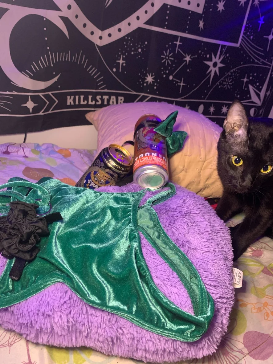 hi there! I'm Violet. I'm the one with a lot of tattoos and I find in my personal style a way to express myself and being just me. I have a couple of piercings too, some of them are a little bit hidden 🫠🫠 My fav things in the world are art, my gfs company and our cats 💞💞